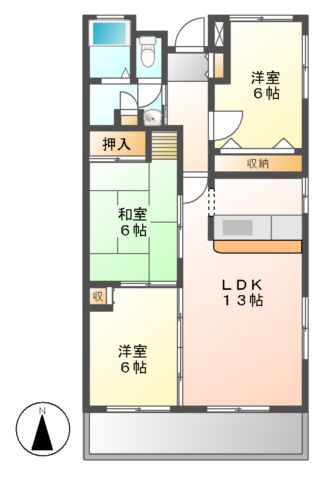 和室6畳/洋室6畳/洋室6畳/LDK13畳