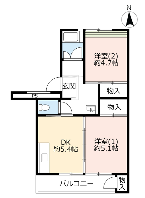 洋室5.1畳/洋室4.7畳/DK5.4畳