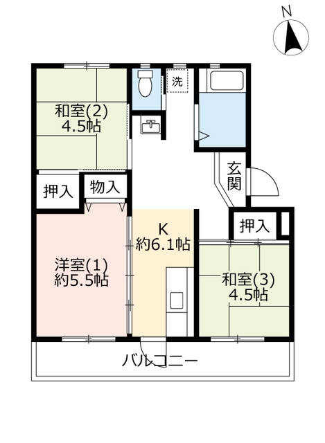 和室4.5畳/和室4.5畳/洋室5.5畳/K6.1畳