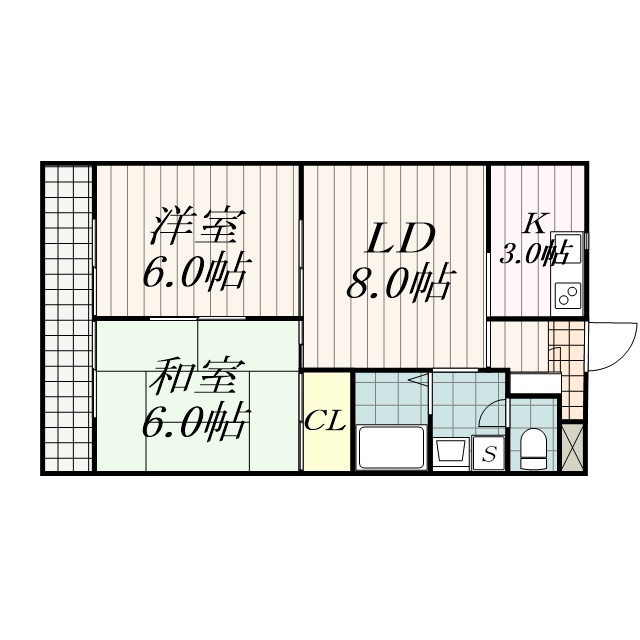 | 間取り詳細 | 和室6畳/洋室6畳/DK6畳 | 使用部位 | 4階号室 |