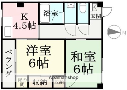 | 間取り詳細 | 和室6畳/洋室6畳/K5畳 | 使用部位 | 6階号室 |