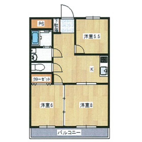| 間取り詳細 | 洋室8畳/洋室6畳/洋室6畳/DK7畳 | 使用部位 | 4階号室 |