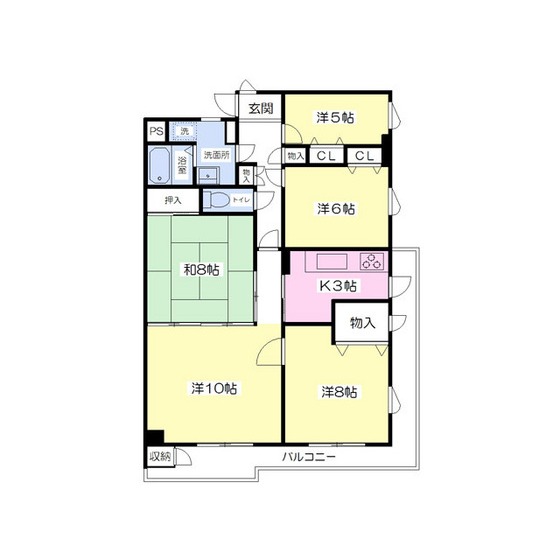 | 間取り詳細 | 和室8畳/洋室10畳/洋室8畳/洋室6畳/洋室5畳/K3畳 | 使用部位 | 6階号室 |