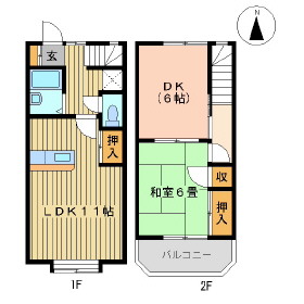 | 間取り詳細 | 和室6畳/洋室6畳/LDK11畳 | 使用部位 | 1階号室 |