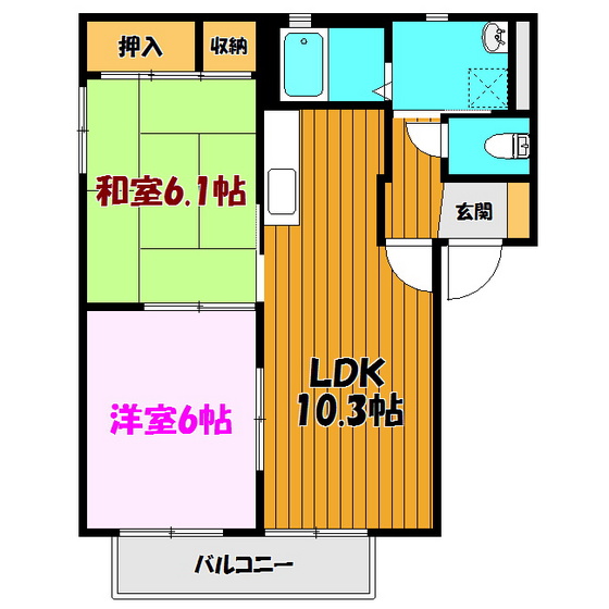 | 間取り詳細 | 和室6畳/洋室6畳/LDK10畳 | 使用部位 | 1階号室 |