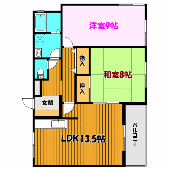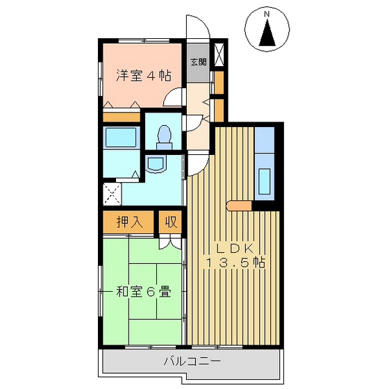 | 間取り詳細 | 和室6畳/洋室4畳/LDK14畳 | 使用部位 | 2階号室 |