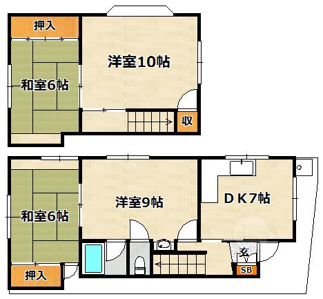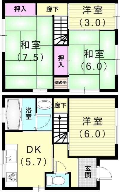 | 間取り詳細 | 和室6畳/和室6畳/洋室7.5畳/洋室7畳/DK8畳 | 使用部位 | 1階号室 |