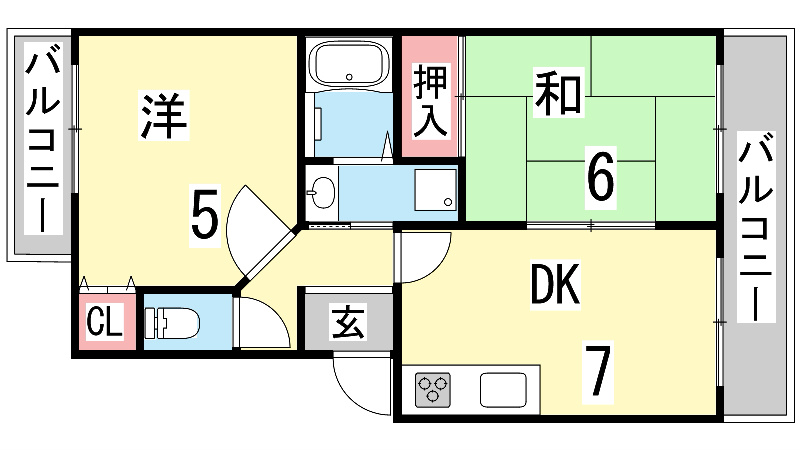 | 間取り詳細 | 和室6畳/洋室6畳/DK7畳 | 使用部位 | 1階号室 |