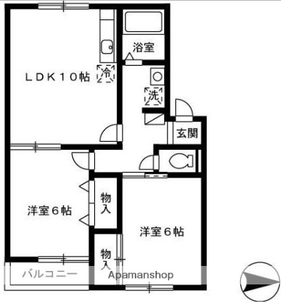 | 間取り詳細 | 洋室6畳/洋室6畳/LDK10畳 | 使用部位 | 2階号室 |