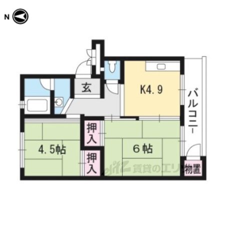 | 間取り詳細 | 和室6畳/和室4.5畳/K4.9畳 | 使用部位 | 4階号室 |