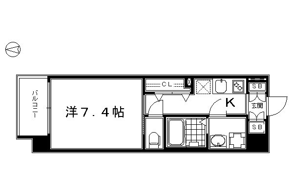 洋室7.4畳/K2畳