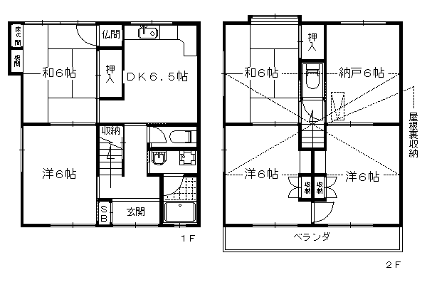 | 間取り詳細 | 和室6畳/和室6畳/和室6畳/和室4畳/洋室6畳/洋室4.5畳/DK7.5畳 | 使用部位 | 2階号室 |