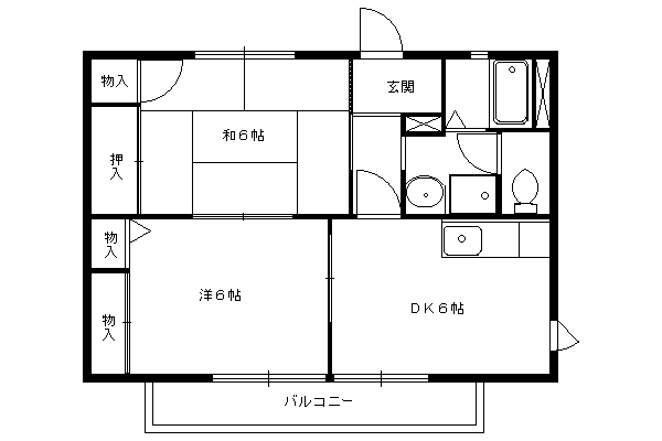| 間取り詳細 | 和室6畳/洋室6畳/DK6畳 | 使用部位 | 2階号室 |