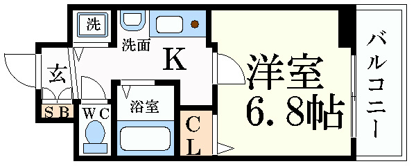 | 間取り詳細 | 洋室6.8畳/K2畳 | 使用部位 | 2階号室 |
