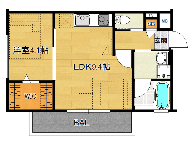 | 間取り詳細 | 洋室4.1畳/LDK9.4畳 | 使用部位 | 4階号室 |