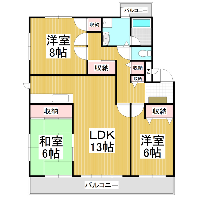 和室6畳/洋室8畳/洋室6畳/LDK13畳