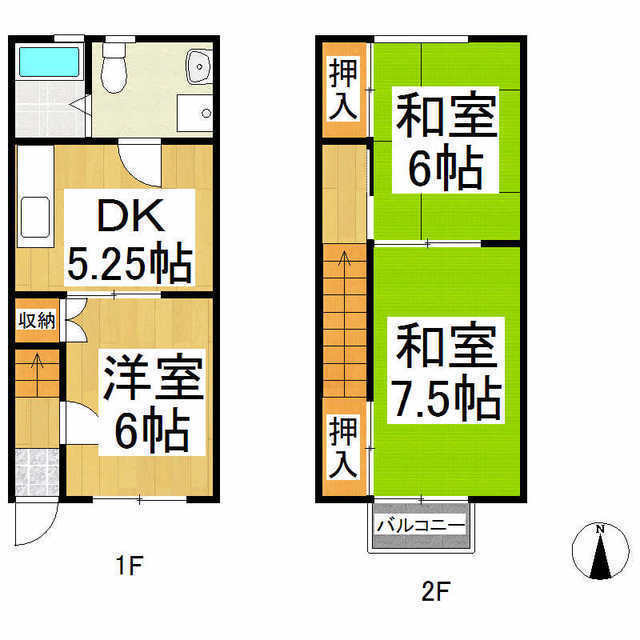 | 間取り詳細 | 和室6畳/和室6畳/洋室6畳/DK7畳 | 使用部位 | 1階号室 |