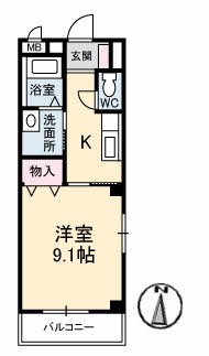 | 間取り詳細 | 洋室9畳/K3畳 | 使用部位 | 2階号室 |