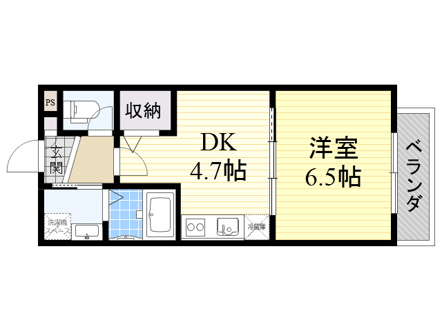 | 間取り詳細 | 洋室6.5畳/DK4.7畳 | 使用部位 | 1階号室 |