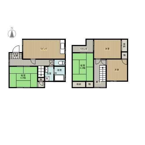 | 間取り詳細 | 和室6畳/和室6畳/洋室6畳/洋室6畳/DK6畳 | 使用部位 | 1階号室 |