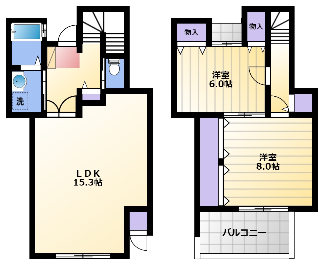 洋室8畳/洋室6畳/LDK15畳